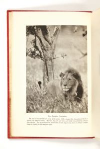 Édition originale, second tirage de cet ouvrage populaire. Le premier chapitre donne en détails les dangers de la chasse au lion. “A lion is dangerous. A lion fights like a demon. A lion kills to eat. Daily he devours the flesh of his prey” (p. 5).