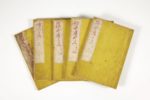 KYOSAI, Watanabe (ill.) Ehon Taka Kagami [Le Mirroir de Fauconnerie, en japonais]. Tokyo, Nakamura Sasuke, Kinkado [début de la période Meiji, vers 1870]. 5 parties petit in-4 (230 x 160 mm). Volume I en 3 parties, volume II en 2 parties. Couverture originale de papier jaune, pièces de titre sur chaque volume, couture à la japonaise, étui moderne.