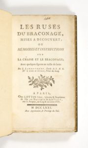Édition originale «peu commune, d'un livre célèbre à juste titre, unique en son genre» (Thiébaud). Ancien braconnier, devenu gardechasse du prince de Condé, Labruyerre présente les moyens de lutter contre le braconnage en détaillant les pièges et les techniques de chasse furtive au fusil.
