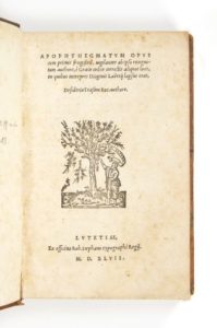 ERASMUS, Desiderius Apophthegmatum opus. Paris, Robert