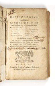 “This valuable Greek-Latin dictionary for the ancient medical writers defined and fixed a large number of anatomical terms, it exercised considerable influence on modern anatomical terminology. It was thus an important aid to the full understanding of the ancient texts” (Garrison-Morton).