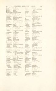 Graecae linguae : «Un supplément nécessaire à son livre, le volume de Glossaria duo e situ vetustatis eruta, dont la place naturelle était sa combinaison avec l'un des tomes du Lexique, ne fut publié qu'en 1573, et on peut attribuer ce retard au besoin de trouver, dans la vente des premiers exemplaires du Trésor, le secours nécessaire pour subvenir aux frais d'impression de ce dernier volume».
