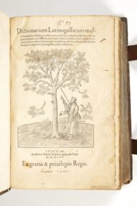 “The Dictionarium Latino-Gallicum of 1538 was inspired by the success of the Thesaurus and was based on the latter's second edition. It received, understandably, an even greater acclaim, was reprinted in 1543 and 1546 and served as the acknowledged model of Latin-German (Zürich 1568), and Latin-Flemish (Antwerp, Plantin, 1573) dictionaries” (PMM).