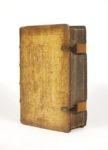 In-folio (347 x 217 mm) de 2 ff.n.ch., 1376 pp. (dont le feuillet c2/1 entre les pages 34/35 sans pagination et avec le verso blanc). Peau de truie sur ais-de bois biseautés, plats ornés de roulettes à froid, dos à nerfs, avec deux fermoirs (reliure allemande de l' époque).