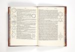 Fabro Stapulensis auctore]. Paris, Wolfgang Hopilius & Henri Estienne, 27 juin 1503. Petit in-folio (277 x 194 mm) de 112 ff.ch. (erreurs de foliotation), titre dans un encadrement gravé sur bois, une gravure sur bois à pleine page, nombreux diagrammes dans le texte, quelques initiales gravées sur bois. Demi-veau à coins (Hatton, Manchester).