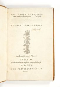 Estienne's program of printing important unpublished Greek texts from manuscripts in the Royal Library” (Schreiber).