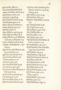 Édition originale. Il s'agit d'un index des noms de personnes et de lieux relevés dans la Bible, pour servir de complément à l'ouvrage précédent. Les deux ouvrages sont admirablement imprimés à l'aide des caractères hébreux gravés par Jehan Arnoul.