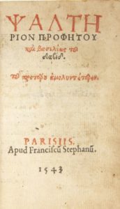 Robert Estienne. This rare Greek Psalter may have been printed by