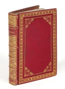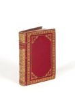 (dont le dernier blanc), 92 ff.ch., 60 ff.n.ch., imprimé en rouge et noir, quelques initiales en criblé dans le texte, épigramme et devise de Geoffroy Tory au dernier feuillet. Maroquin rouge, roulette florale et filets dorés en encadrement des plats, fleurons d'angle, dos à 5 faux nerfs richement doré, roulette sur les coupes, gardes et doublure de moire bleu ciel, tranches dorées (relié par Simier).