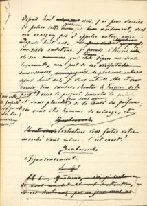 Beau manuscrit écrit au recto de feuillets réglés d'un cahier d'écolier: il offre de nombreux passages raturés et corrigés.
