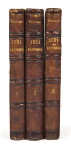 Lev Nikolaïevitch TOLSTOÏ. Anna Karenina [en russe]. Moscou, T. Ris, 1878. 3 volumes in-8: …