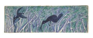 - grand dessin au stylo vert et bleu sur carton (14,6 x 44,8 cm).