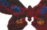 Décalcomanie originale sur trois papiers à fonds de couleurs différentes (rouge, bleu et jaune), découpés en forme de papillon (11,5 x 21 cm).