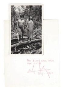 - une aquatinte originale (207 x 154 mm) de Wifredo Lam, non justifiée ni signée; - une photographie originale montrant Wifredo Lam dans son atelier, portant au verso la dédicace signée au crayon rouge: "Pour Broder avec toute/mon amitié/Wifredo Lam, Paris, 1953"; - une carte postale montrant deux Indiens Guaraos dans la forêt du Orinoco, adressée par Wifredo Lam à Louis Broder depuis Caracas, en décembre 1955. Il lui adresse ses voeux pour 1956 et lui annonce la suite de son séjour en Amérique latine.