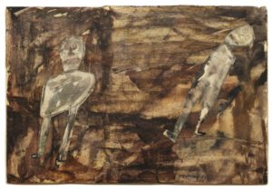 JEAN DUBUFFET. Deux personnages dans un paysage. 1957.