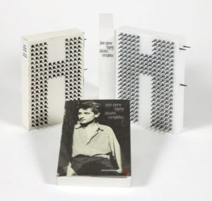 In-8: broché, couverture illustrée rempliée: boîte en box blanc avec deux plaques de plexiglas percées en tout de 228 clous d'acier sur le premier plat et la tranche de gouttière (emboîtage de l' éditeur).