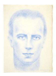 Valentine HUGO. Portrait de Paul Eluard, 1926: dessin original au crayon bleu, signé.