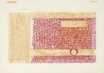 Grande peinture en rouge sur plusieurs papiers collés (en tout 23,5 x 40 cm: la composition seule de Max Ernst mesurant 20,6 x 30,2 cm). Avec une feuille de papier calque portant les indications de couleurs et la marque dessinée de l'éditeur.