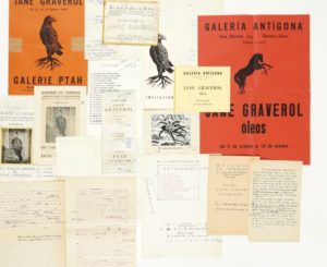 - Galerie Ptah, Bruxelles. Jane Graverol. Exposition du 14 au 26 janvier 1961. Maquette du catalogue et manuscrit du texte de présentation: L' image est la peau de l'objet.