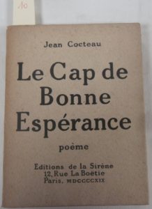 COCTEAU (Jean) — Le Cap de Bonne Espérance. — Poème – Paris, La Sirène, 1919 – Tirage à 510 ex. — Celui-ci n°255/500 sur papier bouffant. — Talvart et Place III, p. 180 n°6
