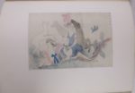 par M. LAURENCIN, page de partition de POULENC, 14 pl. coul. de Marie LAURENCIN / 23 pl. photog. dont port. de Marie Laurencin par Man REY (sic) – en 1 volume basane blonde marbrée, dos à nerfs, p. de t. rouge, tête dorée, n.r., les 2 couvertures identiques ill. par Marie Laurencin conservées (Lie Bonneau)-