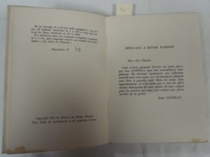COCTEAU (Jean) — Appogiatures. Portrait par MODIGLIANI et un dessin par Hans BELLMER – Monaco, Le rocher, 1953 – in-12  : broché, n.c. - Tirage à 1150 exemplaires, celui-ci n° 78/100 sur pur fil. (tache rousse aux premiers feuillets)