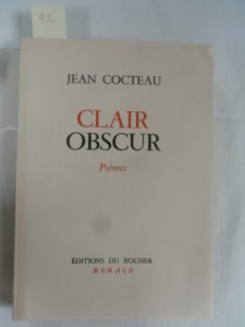 COCTEAU (Jean) — Clair-obscur. — E.O. - Monaco, éditions du Rocher, 1954 - in-8 : broché, n.c. - Tirage à 240 ex., celui-ci n° M14/30 sur Madagascar