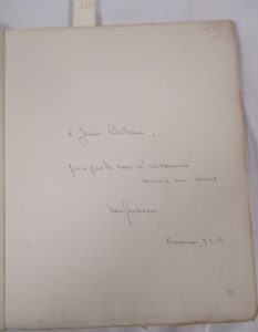E.A.S. de Jean Gondrexon «  à Jean Cocteau , Parce que le rare est condamné comme un crime. Hassenaar 7.2.35»