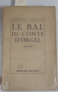 RADIGUET (Raymond) — Le Bal du comte d'Orgel . E.O. - Paris, Grasset, 1924 – in-12  : broché, (couv. un peu maniée) ex. N°587/1100 sur alfa.