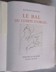 RADIGUET (Raymond) — Le bal du comte d'Orgel. — Ill.. de Jean Cocteau – Monaco, Le Rocher, 1953 – in-4  : 32 eaux-fortes - en feuilles, double emboîtage papier mauve.