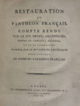 de titre havane (coiffes et mors découverts, couture solide ; qq. rouss. sporadiques). Ce volume renferme : 1. PEYRE (Antoine-François). Restauration du Panthéon français Paris, Impr. Agasse, an VII. p., 5 planches gravées. - 2. VIEL (Charles-François). Moyens pour la restauration des piliers du Panthéon français. Paris, Impr. Perronneau, 1797. 24-8 p., 2 planches. - 3. VAUDOYER (L.). Projet de restauration des piliers du dôme du Panthéon français. Paris, l'auteur et Desenne, an VI. 12 p., 1 planche. - 4. KERSAINT (Armand-Guy). Discours sur les monuments publics Paris, Impr. de Didot, 1792. VIII-80 p., 12 planches. - 5. PRONY, MOLARD. Rapport sur les projets pour remplacer la machine de Marly. Paris, Impr. nationale, an III. [1] f., 34 p., 3 planches. - 6. SMEATON (J.). Recherches expérimentales sur l'eau et le vent, considérées comme forces motrices Paris, Courcier, 1810. [2] f., XXVIII-102 p., [1] f., 5 planches. - 7. ROGNIAT. Nouveaux moyens méchaniques pour tirer un grand parti de la force des vents Paris, Impr. Le Normant, an II. 28 p., 1 planche. - 8. DUPAIN-TRIEL (J. L.). Recherches géographiques sur les hauteurs des plaines du royaume, sur les mers et leurs côtes et sur diverses espèces de montagnes. [Sans page de titre, colophon : Paris, Impr. Hérault, 1791]. 27 p., 2 planches (num I et III, la pl. II constituée des cartons de la première), dont une grande carte dépliante aux limites coloriées. La fin du volume renferme 5 comptes rendus de séances de l'Institut impérial, classe des sciences (1814).