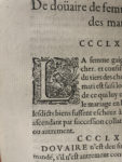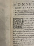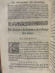 f., basane havane mouchetée du XVIIIe s., dos à 5 nerfs, pièce de titre basane havane, tranches rouges (petits accrocs aux coiffes, piq. de vers en tête et queue du dos, 3 coins émoussés ; fins trav. de vers négligeables dans qq. marges, taches ne contrariant pas la lecture fol. 85-89, 274-275 et aux 4 derniers ff, salissures et frott. fol. 222-226). Première édition comprenant le commentaire de J. Le Batelier d'Aviron. Vignette armoriée au titre, bandeaux et initiales, le tout gravé sur bois. Sign. à 6, A-Z 4, Aa-Zz 4, Aaa-Zzz 4, Aaaa 4, Bbbb 2, C 4, Dddd 4.