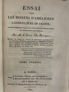 [Agronomie]. BIGOT DE MOROGUES (P. M. S.). Essai sur les moyens d'améliorer l'agriculture en France, particulièrement dans les provinces les moins riches, et notamment en Sologne. A Paris, chez Tourneux, Huzard-Courdier ; Orléans, Mme Vve...