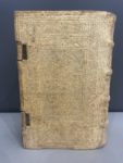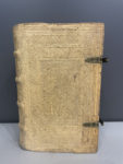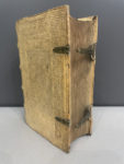 plat orné à froid d'une plaque centrale bordée d'une roulette et de filets - scène de la Nativité au plat sup., baptême du Christ au plat inf., fermoirs (frottements, trace d'une pièce de titre ôtée, 2 coins découverts, bruniss. ordinaires). Première édition allemande de cette Vie de la Sainte Vierge, par le père Bonifacio, humaniste jésuite espagnol (1538-1606), dont les qualités littéraires ont été louées par ses contemporains. Il composa en particulier des oeuvres dramatiques qui furent mises en scène et servirent de support à un enseignement chrétien novateur. Le volume est précédé d'un titre gravé illustrant en plusieurs vignettes les miracles de la Vierge. Provenance : ex-libris manuscrits anciens, dont Johann Leonard Mayr ; un autre daté de 1646 et un de 1852 ; cachet au titre, et étiquette d'une maison jésuite parisienne. (VD17 12:117532E).