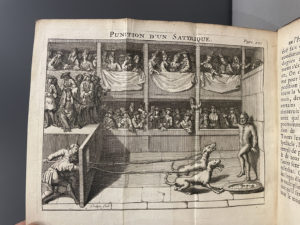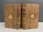 (privil., cat. du libraire) + [4] f., 488 p., pl., veau blond époque, dos à 5 nerfs, pièces de titre et de tomaison havane, caissons ornés, triple filet doré bordant les plats, armes frappées aux centres, roulette dorée aux coupes, tranches mouchetées (trav. de vers en tête d'un dos, piq. discrètes sur une coiffe ; mouillures claires dans qq. marges et dans le coin de la 1ère pl., brunissures). Seconde édition de ce roman d'anticipation satirique, « Augmentée du dénouëment de l'histoire du docteur Dirto, de ses sentences & jugemens, de ses bons mots, d'une maniere extraordinaire inventée pour punir un satyrique, d'une figure qui en represente l'éxecution, & de plusieurs autres ». Elle est illustrée de 9 planches gravées sur cuivre par Crépy, dont une dépliante. La première édition parue en 1711 n'en comportait que 4, et la plupart des exemplaires connus de celle-ci n'en renferment pas plus de 6. Provenance : Jean-Joseph de Bourguignon-Bussière de La Mure, né en 1721, officier au service du roi de France puis exempt des gardes du corps de Stanislas, roi de Pologne, et bibliophile (armes frappées aux plats) ; trace de cachet moderne aux titres.