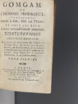 [Reliure aux armes]. [BORDELON (Laurent)]. Gomgam, ou L'homme prodigieux, transporté dans l'air, sur la terre, et sous les eaux. Livre véritablement nouveau. Titetutefnosy. A Paris, chez P. Prault, 1712. 2 volumes in-12, [25] f., 343 p., [2] f....