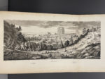 bleu nuit dos à 5 nerfs, auteur, titre, tomaison, fleurons et date dorés, têtes dorées, non rogné (pour les 2 vol. de texte), demi-chagrin noir, dos à 5 nerfs, titre doré (pour l'atlas) (menus frott. aux coupes de l'atlas ; mouill. claire angul. aux tout derniers ff. des vol. de texte ; pour l'atlas, rouss. au texte, qq. brunissures et rouss. en marge, la pl. 7 un peu plus brunie mais hors de la figure). Édition originale de ce remarquable panorama détaillé du département. Elle contient 2 tableaux dépliants dans les volumes de texte ; l'atlas offre 46 planches gravées à l'aquatinte ou en taille-douce, dont un frontispice et une carte. Jacques Cambry (Lorient, 1749 - Cachan, 1807) fut administrateur du département de Paris (1799) et préfet du département de l'Oise de 1800 à 1802. Philologue et antiquaire, il fut l'un des fondateurs de l'Académie celtique et son premier président.