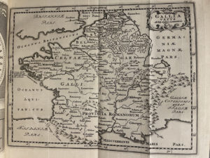 (sur 8)] f., 862 p., [26] f. (index), 224 p., pl., maroquin vert bouteille, dos à 5 nerfs saillants ornés d'un pointillé doré, auteur, titre, lieu et date dorés, caissons richement ornés, plats décorés à la Duseuil, double filet doré aux coupes, dentelle intérieure, tranches dorées sur marbrure [David] (sans le frontispice). Édition estimée, comprenant en particulier les notes du philologue néerlandais Dionysius Vossius (1612-1642) et de son confrère anglais John Davies (1679-6132), professeur à Cambridge. Elle est illustrée de 12 planches et 3 cartes, le tout gravé sur cuivre. Superbe exemplaire très bien relié. Provenance : Georges Emmanuel Lang (vers 1920, ex-libris macabre gravé par Dewambez).