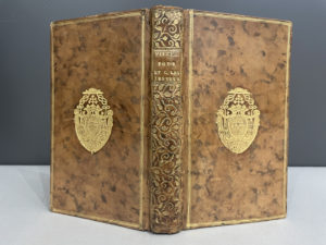 parties en un volume in-12, 145 p., [2] f., pp.7-282 sans manque, [2] f. (errata), veau blond marbré époque, dos lisse richement orné, titre doré, triple filet doré bordant les plats, armes dorées aux centres, filet doré aux coupes, tranches rouges (coiffes découvertes, 3 coins frottés, rousseurs sporadiques). Intéressant exemplaire de ce recueil fermement opposé aux jésuites, oeuvre du parlementaire normand J. G. B. Charles (Rouen, 1730-1804) : il provient de la bibliothèque d'un grand défenseur de la Société de Jésus, Christophe de Beaumont (1703-1781), archevêque de Paris, fervent adversaire du jansénisme et de la philosophie des Lumières (armes frappées). Autre provenance : De Broé, avocat-général (ex-libris XIXe s. au titre).