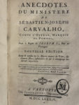 vol. in-8, demi-basane fauve mouchetée époque, dos lisse, pièce de titre verte, tomaison frappée, tranches jaunes (bruniss. et rouss. éparses ; sans le portrait). On joint : ANECDOTES du ministère de Sébastien-Joseph Carvalho, comte d'Oyeras, marquis de Pombal A Varsovie, chez Janosrovicki [i.e. Liège, chez Lemarié], 1784. In-8, XXXI-432 p., cartonnage bleu lég. post. (cart. frotté, rares rousseurs). Ce second ouvrage attribué un temps à Cormatin aurait été composé collectivement par 4 jésuites, selon Sommervogel. Etiquettes et cachets de collèges jésuites du XIXe s. Soit 5 volumes.