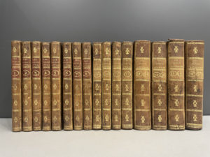 productions qui paroissent pour la première fois en public A Paris, de l'Impr. de Honnert, puis chez Morin et Lenoir, an IV - an VIII [1795-1800]. 20 tomes en 16 vol. in-8, basane racinée de l'époque, dos lisse orné de roulette et lyres en fleurons dorés, pièces de titre et de tomaison havane (t.1 à 8) puis blondes (t.9 à 20) (qq. défauts d'usage, brunissures, qq. salissures). Ensemble complet en reliure homogène de cette série qui reflète les goûts littéraires des amateurs français sous le Directoire et au début du Consulat.