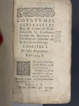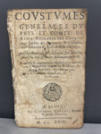 (sur 5)] f., [sign. a8 B-Z8 Aa-Bb8 Cc3 (sur 4)] veau brun glacé du XVIIe s., dos à 5 nerfs, pièce de titre, tranches rouges (garde inf. usée, défauts int. dont titre bruni et usé en marge, trav. de vers dans qq. marges, mouillures claires sporadiques, déch. réparée f.134, accroc en marge f. 142, manque le dernier f. Cc4). (USTC 56576, 5 exemplaires localisés : B.M. Blois, Chartres, Vendôme, U.K. B.L. et Harvard Law Libr.). On joint une édition non identifiée, probablement XVIIe siècle, sans page de titre ni feuillets liminaires, dont le titre de départ est : Coustumes générales du pays & comté de Blois. In-8, 451 p., parchemin époque (qq. trav. de vers, des ff. lacérés sans manque, taches, ex. manié ; joints les 4 premiers f. de l'édition de Blois, 1629, défraîchis) Soit 2 volumes.