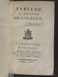 [Économie politique]. [FABRE DE CHARRIN]. Tableau du ministère de Colbert. A Amsterdam et se trouve à Paris, chez Lejay, 1774. In-8, [2] f., 152 p., demi-veau havane époque, dos lisse et orné, pièce de titre basane brune (dos frotté avec...