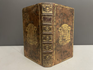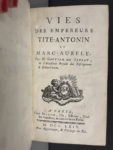 [Reliure aux armes]. GAUTIER DE SIBERT. Vies des empereurs Tite-Antonin et Marc-Aurèle. A Paris, chez Musier, 1769. In-12, XXVIII-447 p., [1] f., veau havane moucheté époque, dos à 5 nerfs, pièce de titre grenat, caissons ornés, triple filet et...