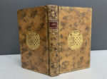 veau blond marbré époque, dos lisse et orné, pièce de titre maroquin rouge, triple filet doré bordant les plats avec petits fleurons angulaires, armes dorées aux centres des plats, filet doré aux coupes, tranches rouges (petite piqûre de ver sur un mors, mq. de papier en marge p.163).