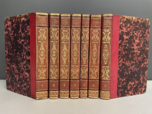 tranches marbrées (choc au bord d'un plat, 3 piq. de vers sur un mors ; rousseurs). Ouvrage traduit de l'allemand sur la quatrième et dernière édition, par W. Suckau et A. Schutte, illustré de 10 planches, dont 3 cartes et 5 plans dépliants. Belle reliure romantique. Provenance : Séminaire Sainte-Croix (cachet répété aux titres).