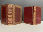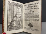 plats, tranches dorée (dos frotté, gardes salies, coiffes usées, une pl. restaurée). On joint : MEILLEURS (Les) cantiques que je connaisse A Nantes, chez Mellinet-Malassis, 1815. In-12, fig. gravées sur bois, maroquin à longs grains rouge époque, dos lisse orné, roulette dorée aux plats et chasses, coupes guillochées, tranches marbrées. Soit 2 volumes