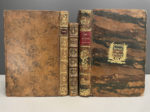 tranches rouges (coins émoussés). Seconde édition suivant l'originale de 1775, et illustrée comme celle-ci de 4 tableaux dépliants hors-texte offrant des modèles de rédaction, et d'un grand plan dépliant gravé sur cuivre. On joint : - OZANAM. Usage du compas de proportion et de l'instrument universel. Nouvelle édition enrichie de figures en taille-douce. A Paris, chez Jombert, 1748. In-12, XX p., [2] f. (approb.), 12 planches dépl. gravées, tableaux dans le texte, veau havane marbré époque, dos à 5 nerfs, titre doré, caissons ornés, tr. rouges (2 coins frottés, fente au bord d'une coiffe ; marge d'une pl. usée, petites auréoles marginales sur qq. ff., titre un peu sali avec signatures biffées). On joint : - THIOLLET. L'art de lever les plans, arpentage, nivellement et lavis des plans, enseigné en 20 leçons Paris, Audin, 1834. In-8, basane havane racinée époque, dos lisse, pièce de titre rouge, tr. marbrées (défauts dont coiffe de tête arasée, coins émoussés, rousseurs). Illustré de 19 planches dépliantes dont un aquarellée. Provenance : Collège royal de Toulouse, 1842 (marque de prix dorée au plat supérieur). Soit 3 volumes