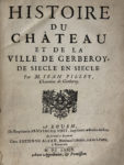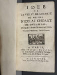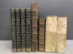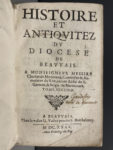 lithographies h.-t. dont 2 plans dépliants, reliure de l'époque demi-chagrin vert foncé à coins, dos lisse, auteur, titre, tomaison, roulette et filets dorés (une coiffe de tête, 2 coupes et qq. coins émoussés, 2 plats un peu défraîchis en tête, pl. placées en désordre). On joint : PILLET (Jean). Histoire du château et de la ville de Gerberoy de siècle en siècle. A Rouen, de l'Imp. d'E. Viret, et se vend à Beauvais, chez E. Aleau, 1679. In-4, [8] f., 359 p., [1] f. (errata chiffré 360), veau brun époque, dos à nerfs orné, titre doré (rel. tachée, coiffes découvertes, coins très usés, garde sup., mq., rouss.). Dédié à l'évêque de Beauvais Nicolas Choart de Buzenval. On joint : [MESENGUY]. Idée de la vie et de l'esprit de messire Nicolas Choart de Buzanval, évêque et comte de Beauvais, vidame de Gerberoy, pair de France. A Paris, chez F. Barrois, 1717. Deux parties en un vol. in-12, XX p., [4] f., 327-39 p., veau brun granité époque, dos à 5 nerfs, titre doré, caissons ornés (défauts dont coiffe de tête découverte, rousseurs). La seconde partie de l'ouvrage renferme un Abrégé de la vie de Hermant, chanoine de Beauvais. On trouve, relié à la suite : BAILLET. La vie de Godefroy Hermant Amst., Mortier, 1717, très défraîchi avec travaux de vers soutenus en fin de vol. On joint : [LOUVET (P.)]. Histoire et antiquitez du païs de Beauvaisis... ; Histoire et antiquitez du diocèse de Beauvais... A Beauvais, chez la Vve Vallet, 1631 et 1635. 2 vol. in-8, rel. parchemin ancien, étiq. au dos (défauts d'usage, un vol. déboîté ; pages de titre défraîchies, celle du t.2 déreliée, le f. suivant frotté, mouill. négligeables, accroc touchant qq. mots p.161-2 du t.2). Soit 8 volumes