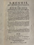 LA SAUVAGÈRE (Félix-François de). Recueil de dissertations, ou Recherches historiques et critiques sur le temps où vivoit le solitaire saint Florent au Mont-Glonne, en Anjou, sur quelques ouvrages des anciens Romains nouvellement découverts dans...